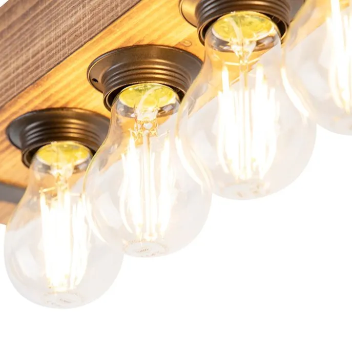 Industriële plafondlamp hout met staal 4-lichts – Reena