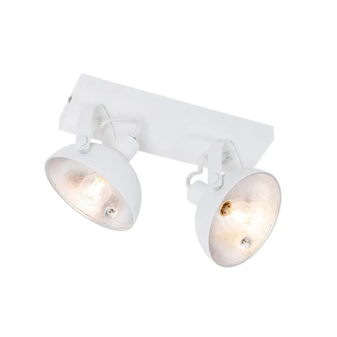 Industriële plafondlamp wit met zilver 2-lichts verstelbaar – Magnax