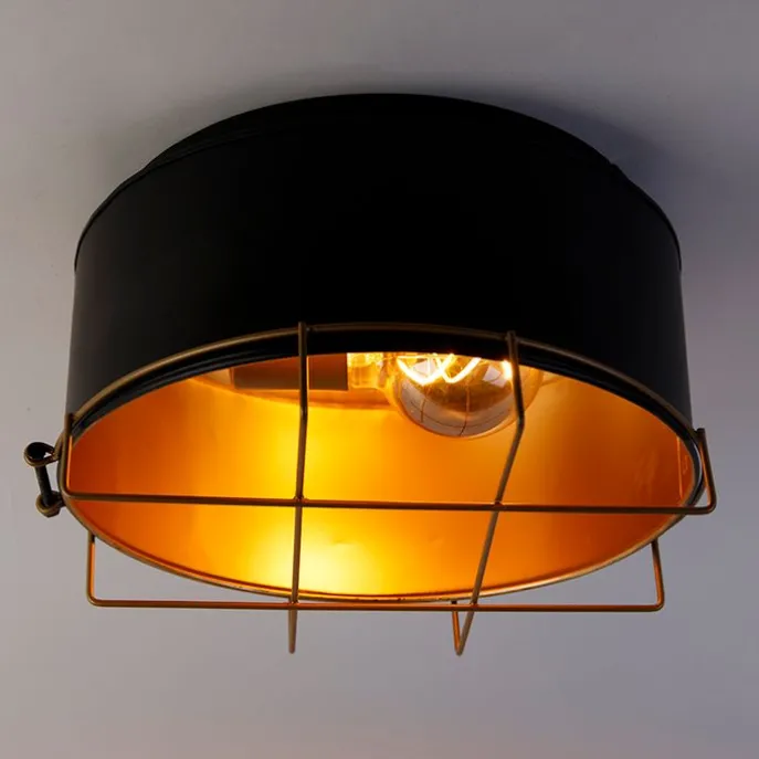 Industriële plafondlamp zwart met goud 35 cm – Barril