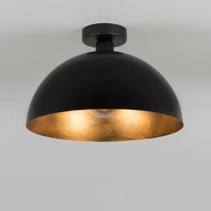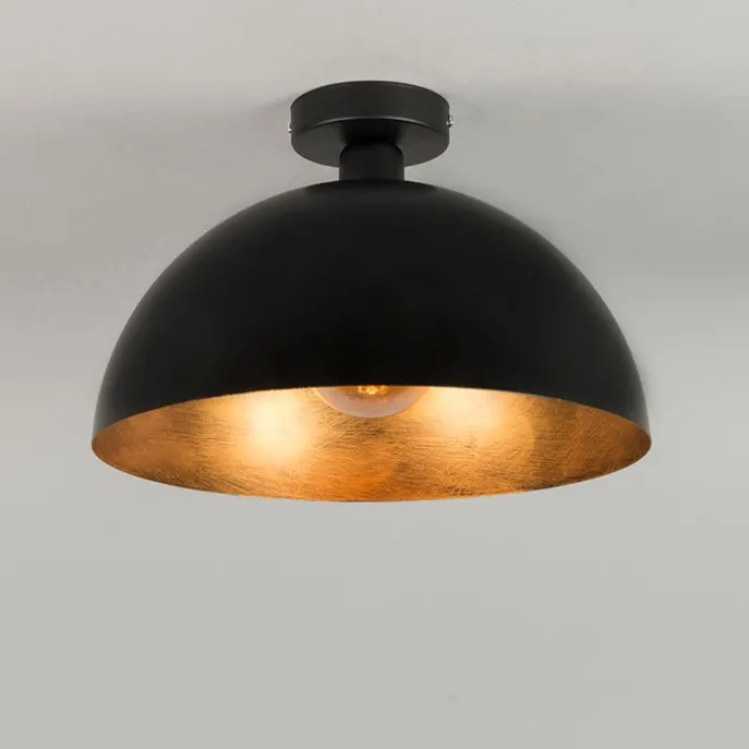 Industriële plafondlamp zwart met goud 35 cm – Magna