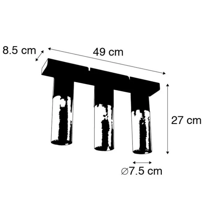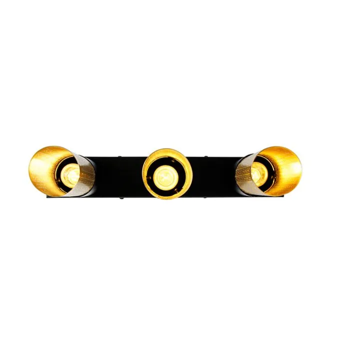 Industriële plafondlamp zwart met goud langwerpig 3-lichts – Raspi