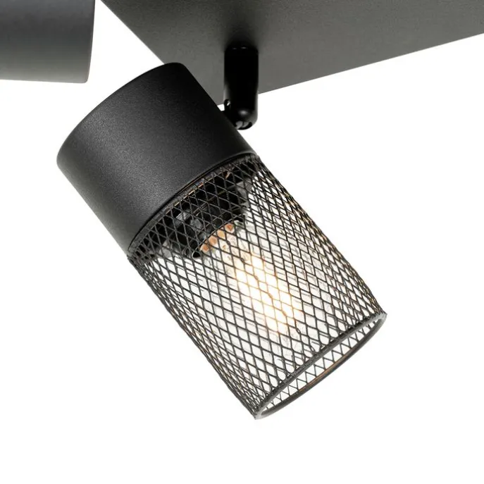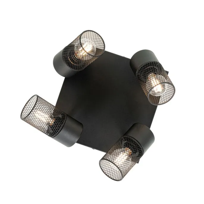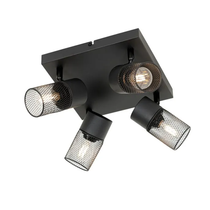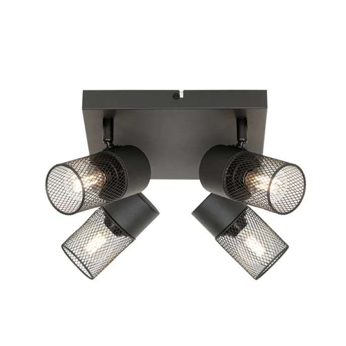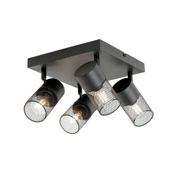 Industriële plafondspot zwart 4-lichts verstelbaar – Jim