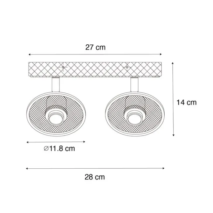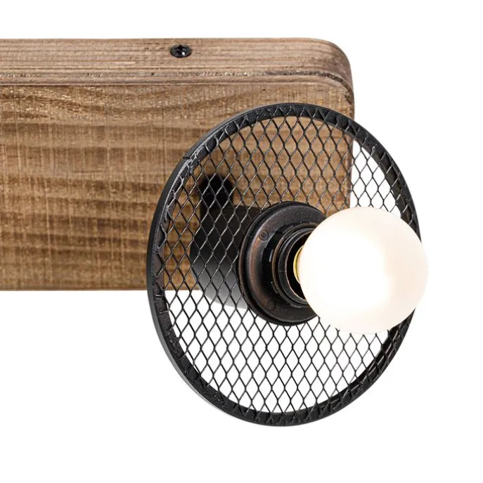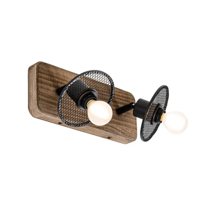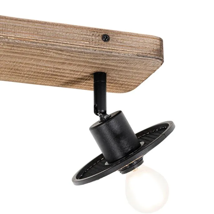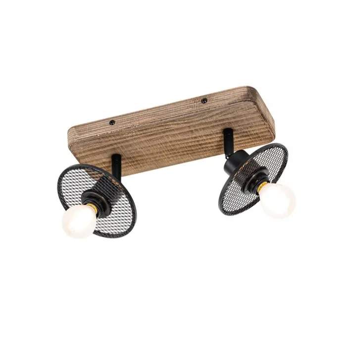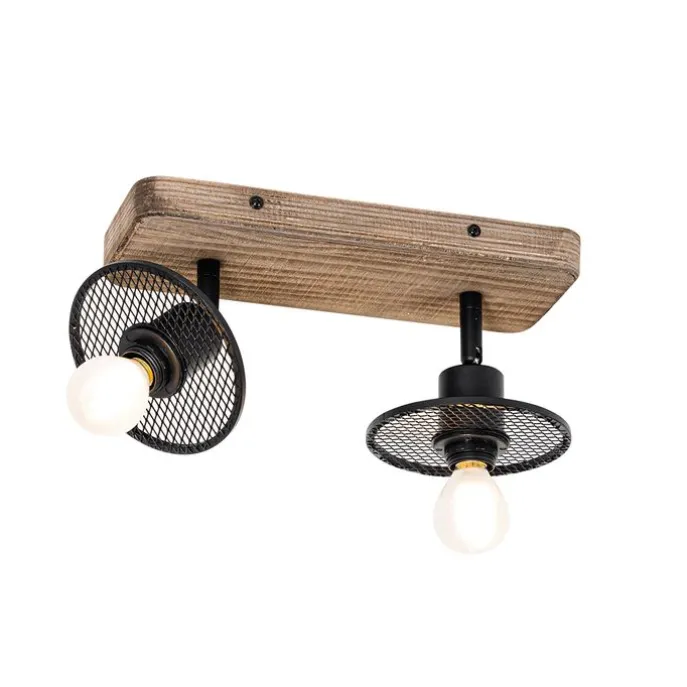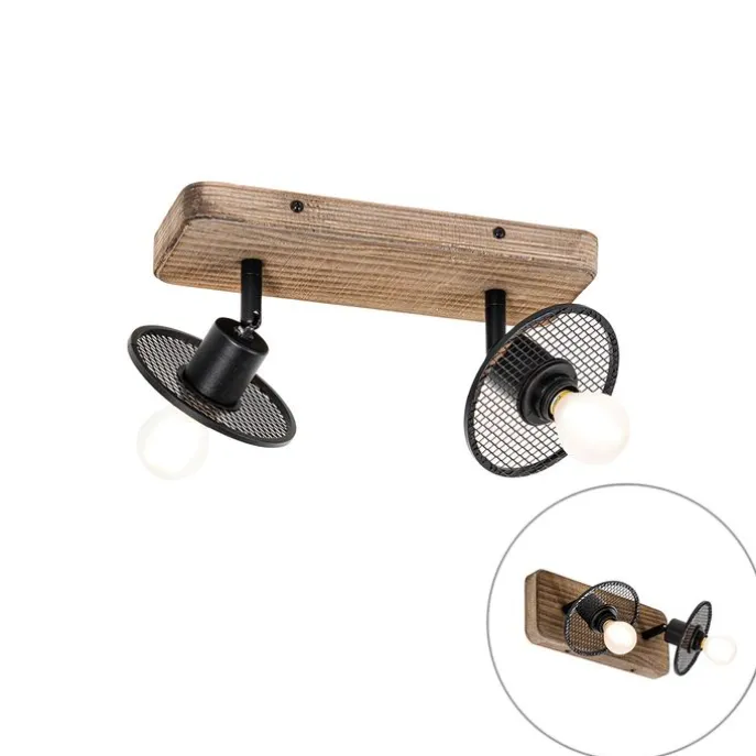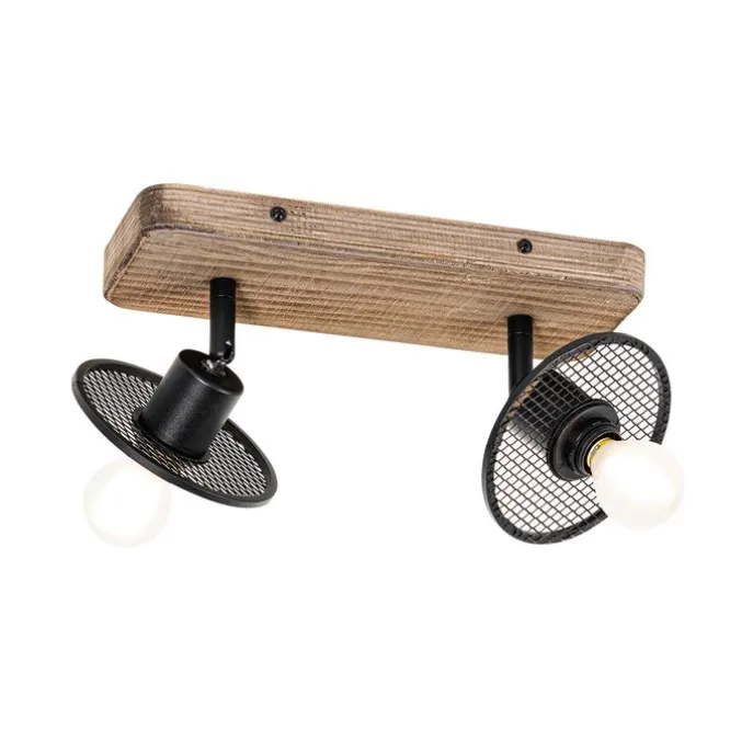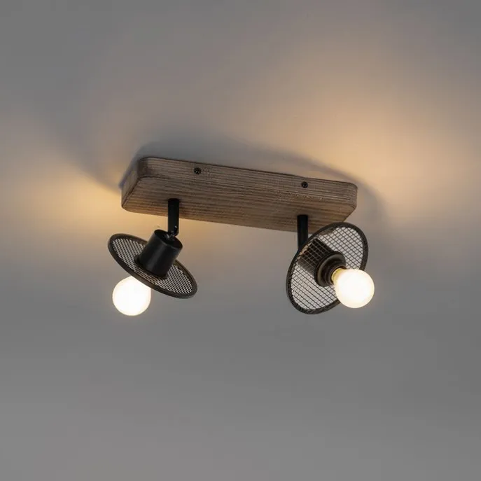 Industriële plafondspot zwart met hout 2-lichts – Jasmijn
