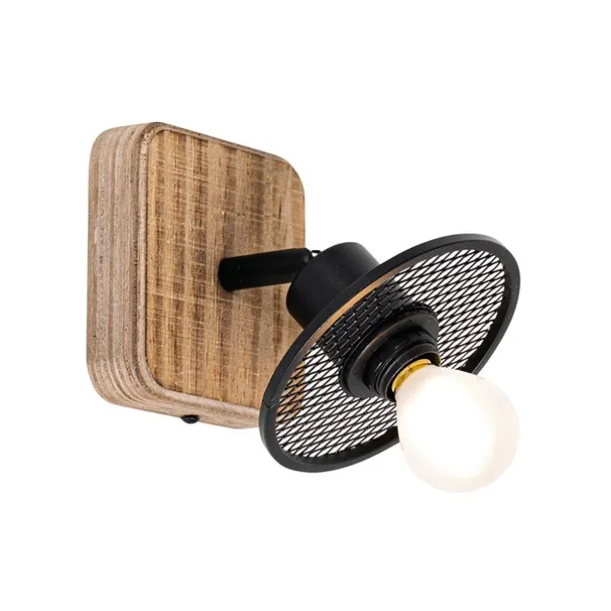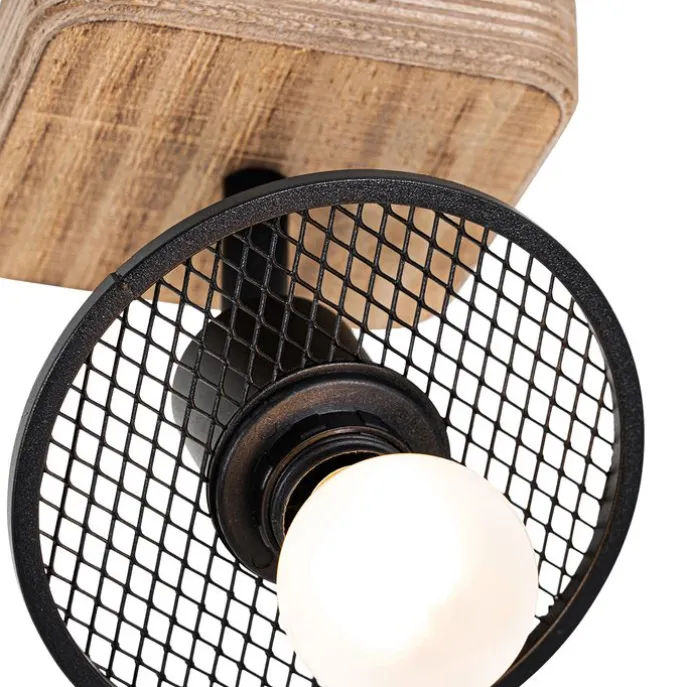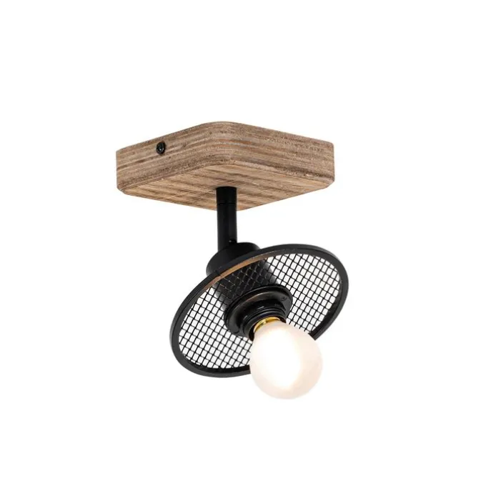 Industriële plafondspot zwart met hout – Jasmijn