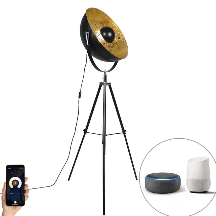 Industriële smart vloerlamp zwart tripod incl. WiFi A60 – Magna 50 Eglip