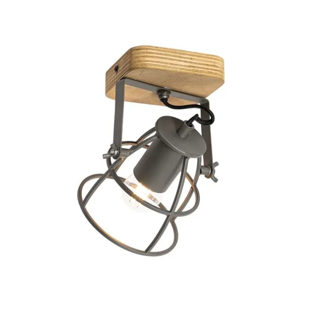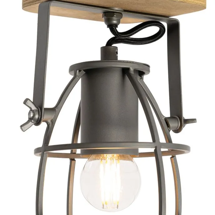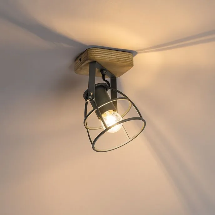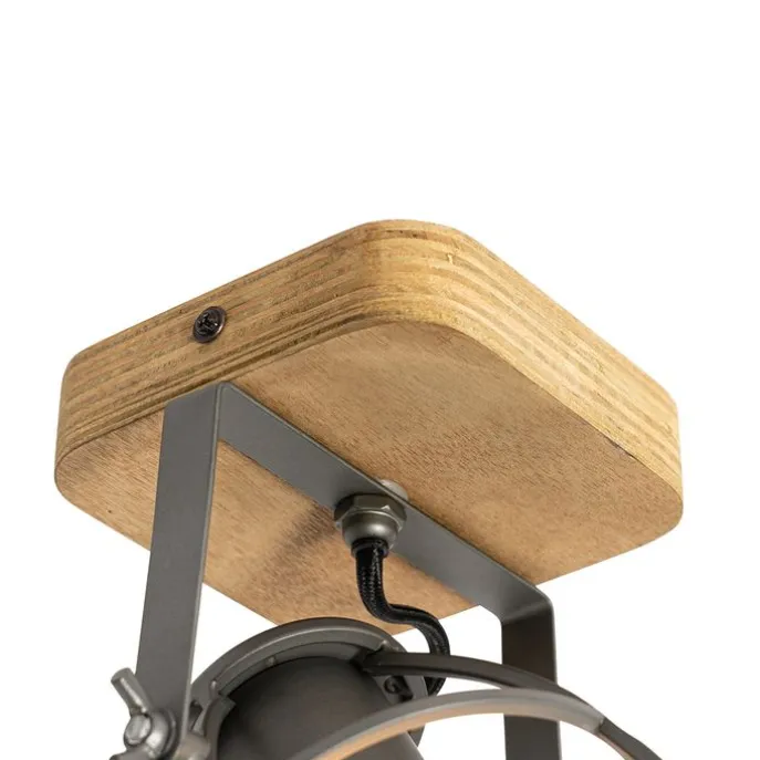 Industriële spot donkergrijs met hout verstelbaar – Arthur