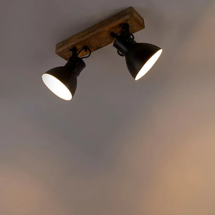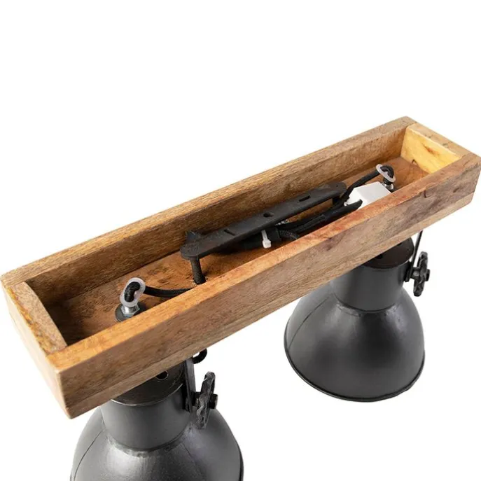Industriële spot donkergrijs met mango hout 2-lichts – Mangoes