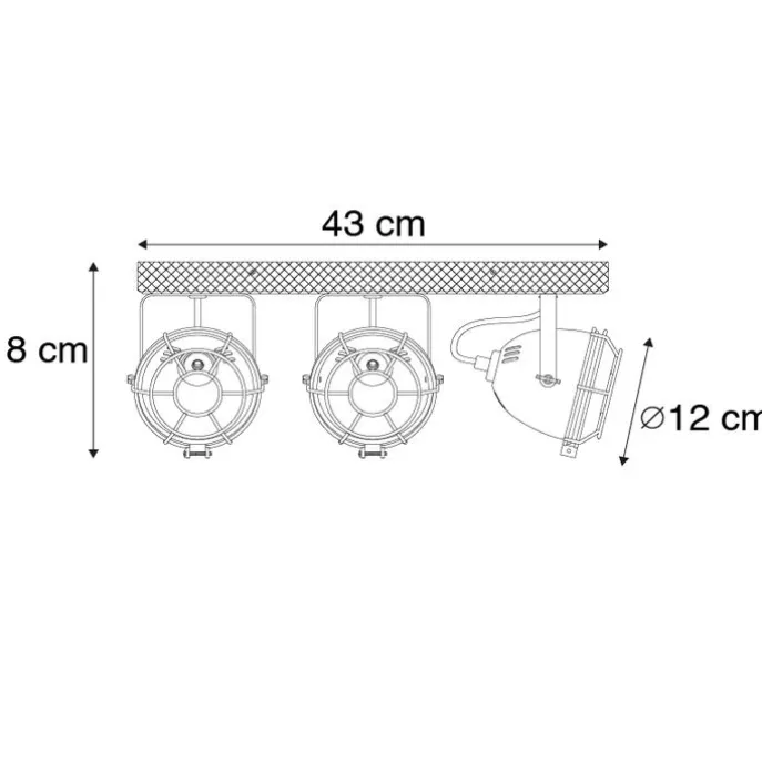 Industriële spot roestbruin met hout kantelbaar 3-lichts – Gina