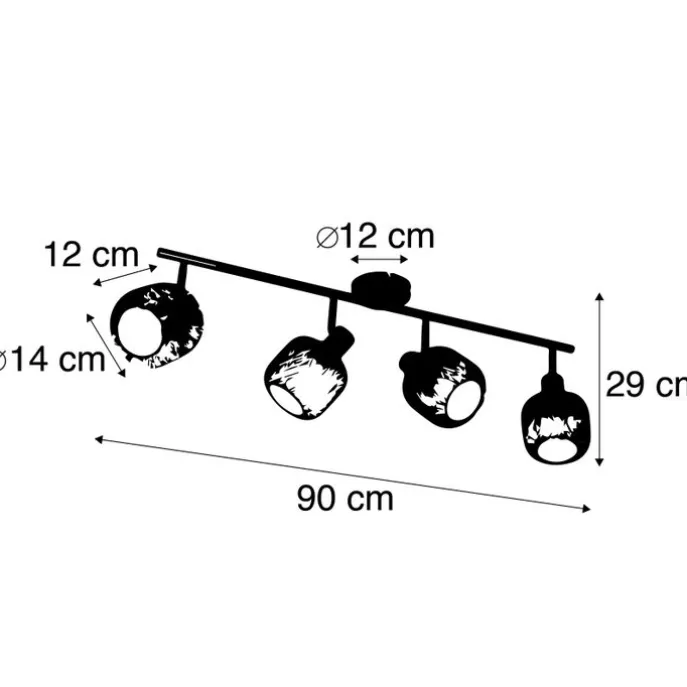 Industriële spot zwart met goud 4-lichts – Bliss Mesh