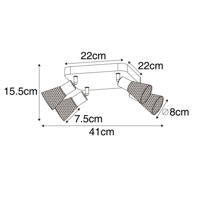 Geef je interieur een industrieel tintje met onze Kristina. Deze spot is gemaakt van bruin hout met zwart staal. Het open design van de kappen zorgt voor een prachtig lichteffect. Hij heeft een diepte van 22 cm, een hoogte van 15,5 cm en een lengte van 41 cm. De montageplaat heeft een hoogte van 3 cm, een lengte van 22 cm en een breedte van 22 cm. Je maakt deze lamp compleet met vier E14 lichtbronnen, vergeet deze er niet los bij te bestellen. Je maakt het extra gezellig maken in huis met een externe dimmer, deze lamp is namelijk dimbaar. Maak jouw interieur compleet met deze Kristina.