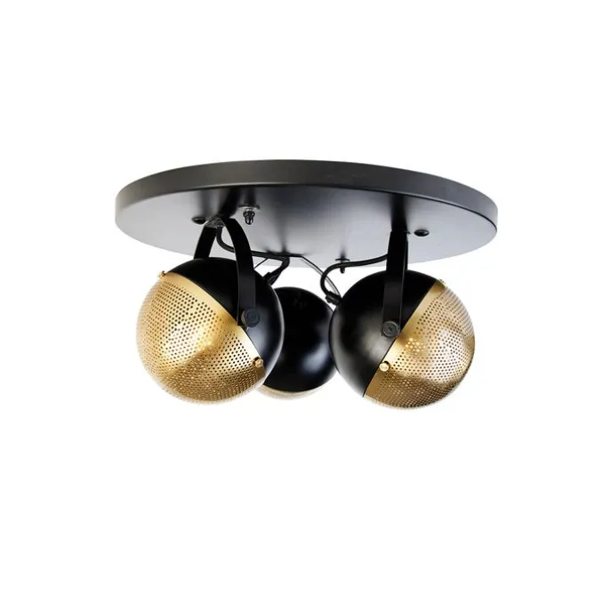 Industriële spot zwart met messing 3-lichts – Haicha