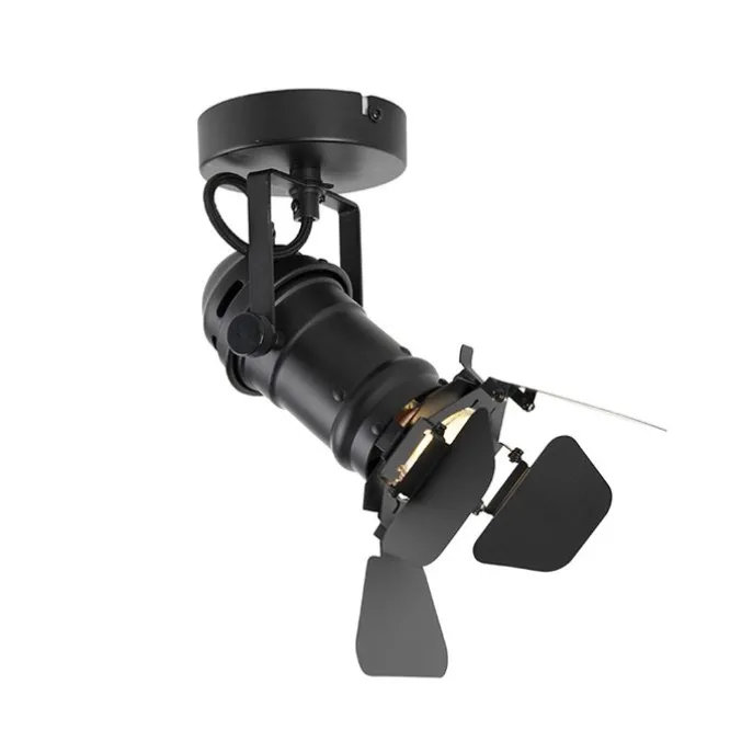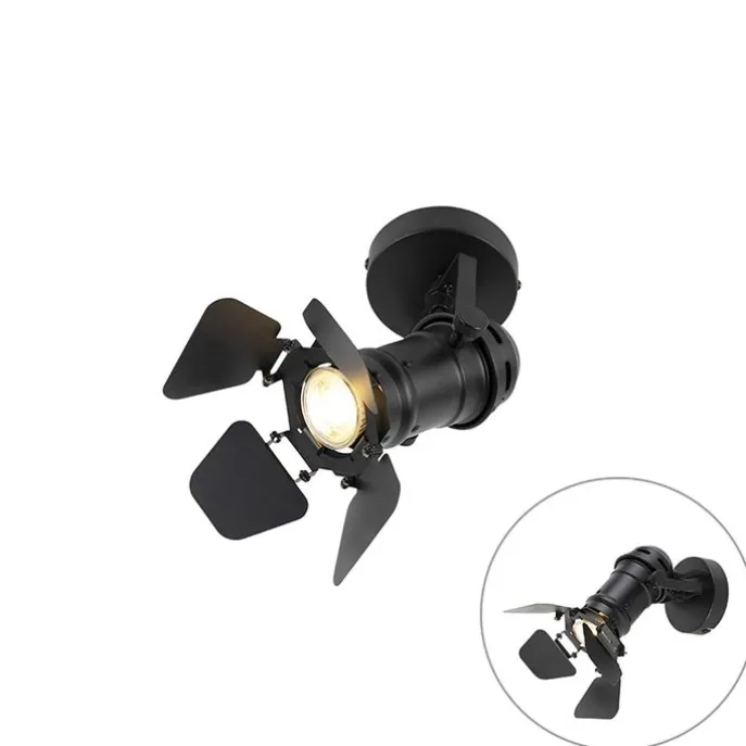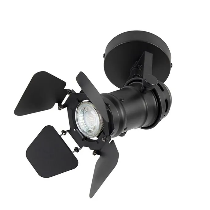 Industriele studiospot zwart GU10 met kleppen – Movie