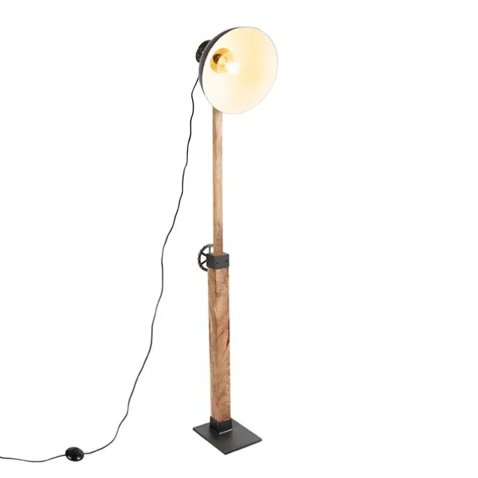 Industriele vloerlamp donkergrijs met mango hout – Mangoes
