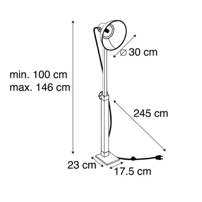 Deze Mangoes is een stoere industriële vloerlamp in hoogte verstelbaar met een zwarte kap en afgewerkt met mango hout. Een prachtige schijnwerper voor in de woonkamer! De lampenkap kan in schijnrichting worden aangepast, super handig voor bij het lezen.Hij is verstelbaar in hoogte aan de voet: maximale hoogte van 146 cm en minimaal 100 cm hoogte. Hij wordt met kabel geleverd waarvan de lengte max. 245 cm is. De kap heeft een diameter van 30 cm.Met een stoere lichtbron passend in een E27 fitting (max. 25 Watt) maak je je Mangoes helemaal compleet.De lamp is tevens dimbaar met een externe dimmer; maak je interieur extra sfeervol met industriële eyecatcher!