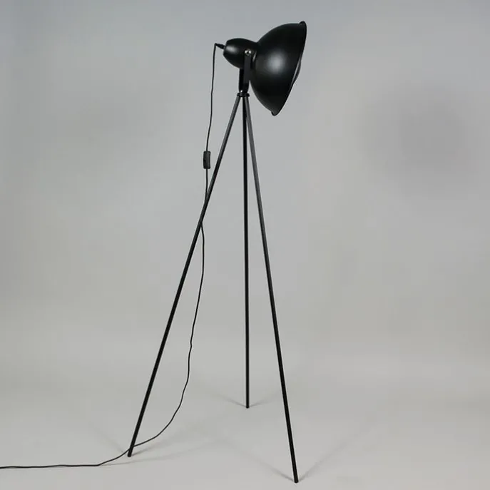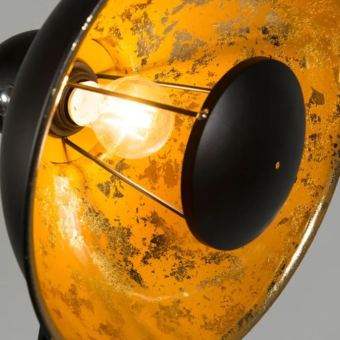 Industriële vloerlamp tripod zwart met goud – Magna Basic 25