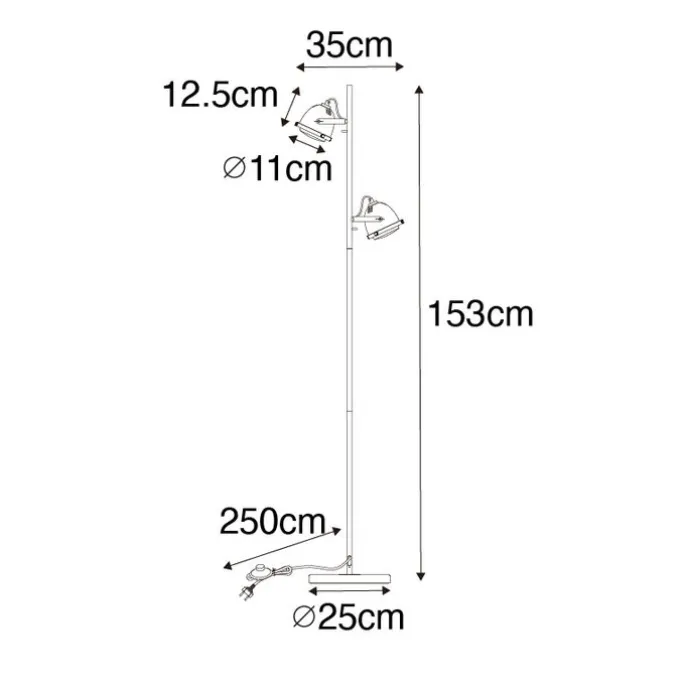 Industriële vloerlamp zwart 2-lichts – Emado