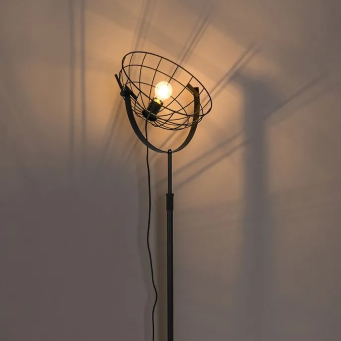 Industriële vloerlamp zwart 35 cm verstelbaar – Hanze