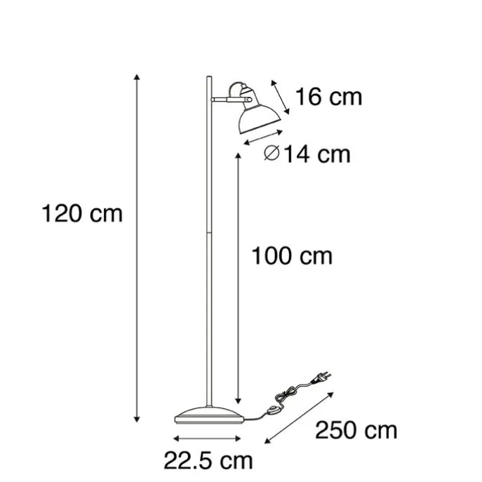 Industriële vloerlamp zwart met goud 1-lichts – Tommy