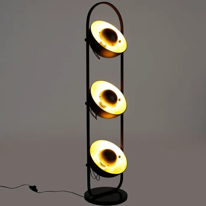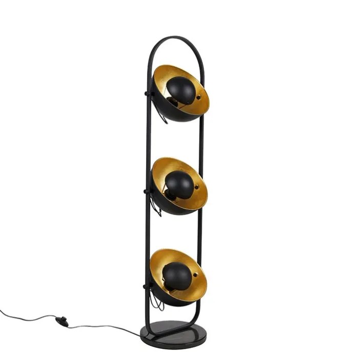 Industriële vloerlamp zwart met goud 3-lichts – Magnax