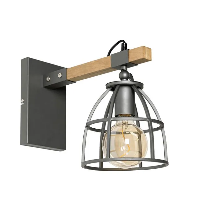 Industriële wandlamp donkergrijs met hout verstelbaar – Arthur