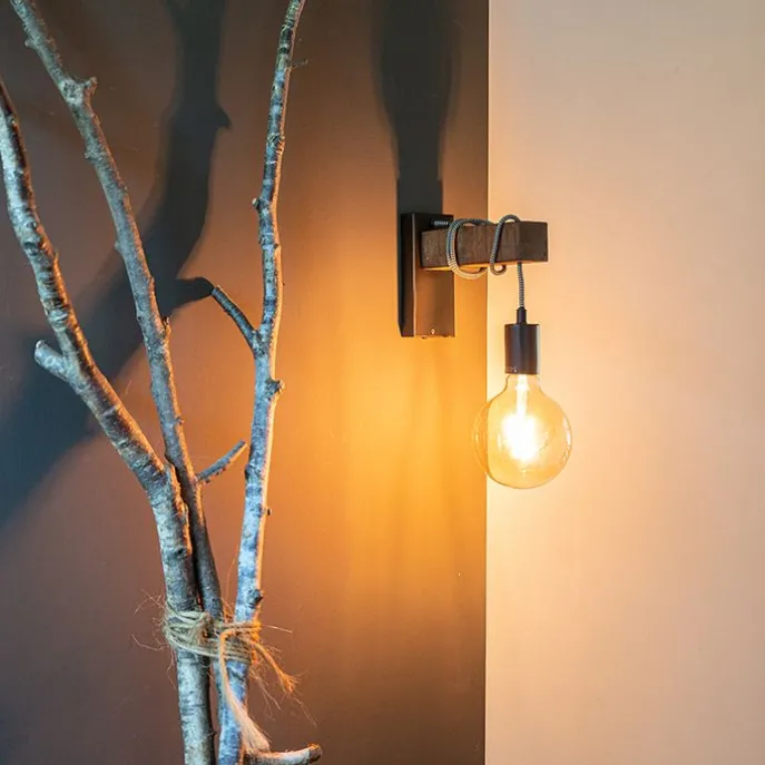 Industriële wandlamp zwart met hout – Gallow