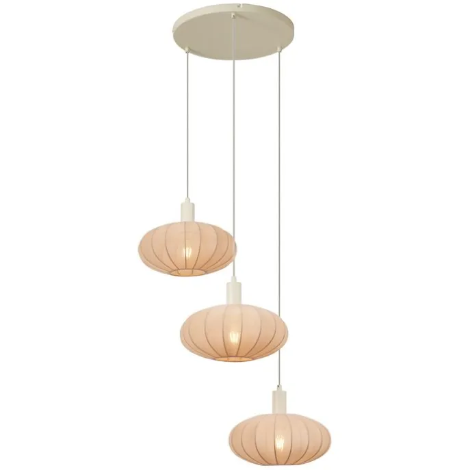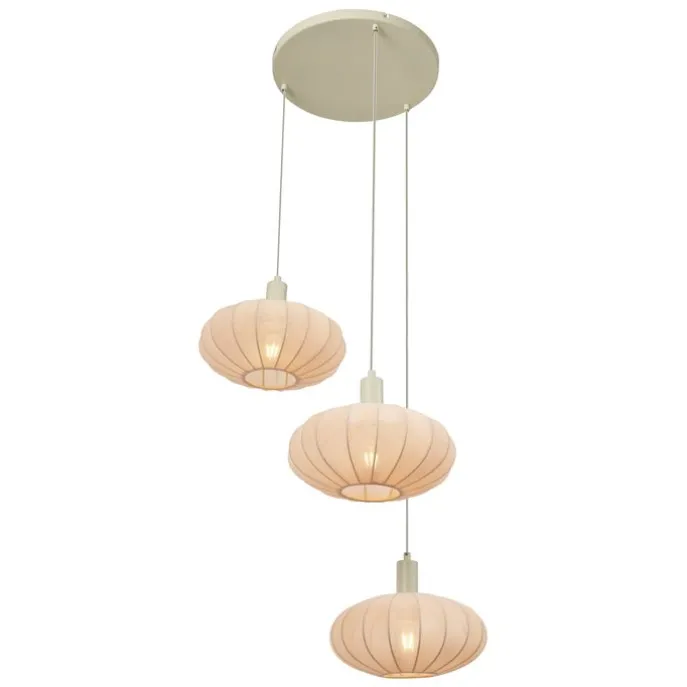 Japandi hanglamp beige met stoffen kap 3-lichts – Bida