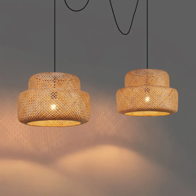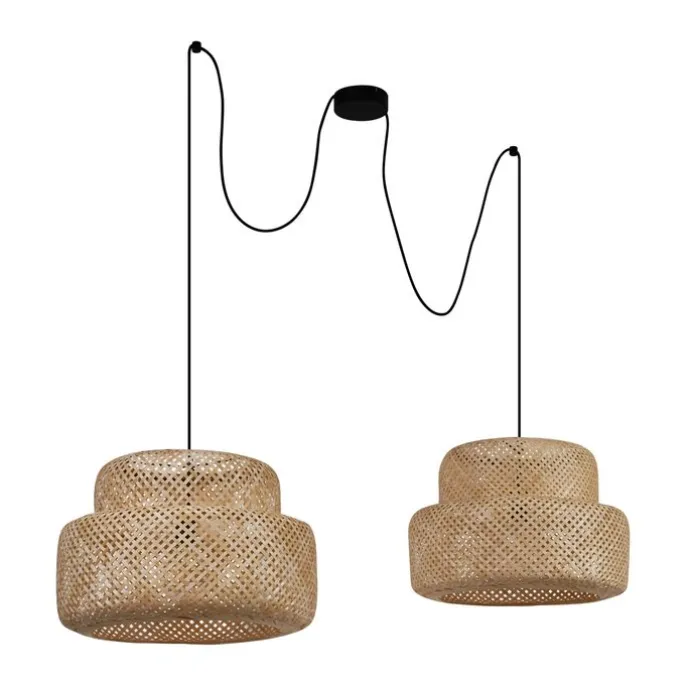 Japandi hanglamp zwart met bamboe 2-lichts – Kea