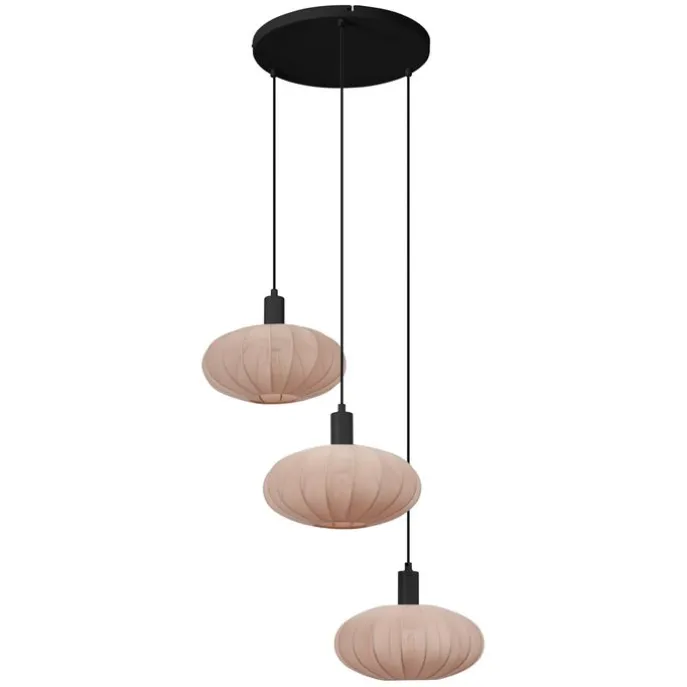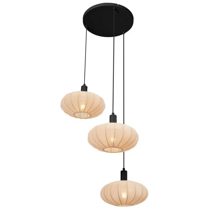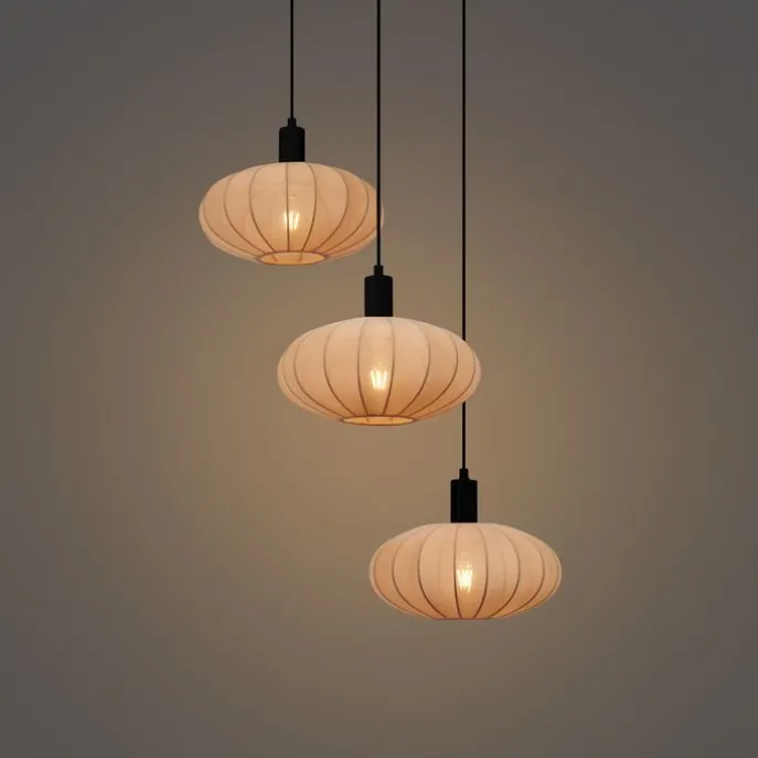 Japandi hanglamp zwart met bruine stoffen kap 3-lichts – Bida