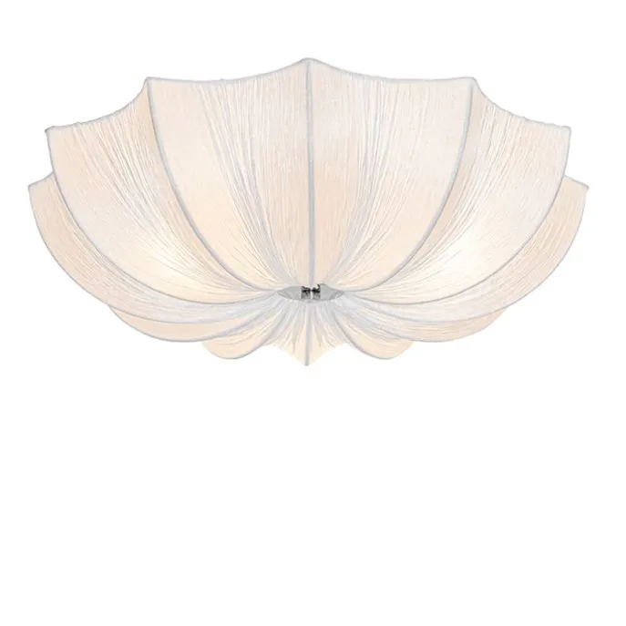 Haal een echte eyecatcher in huis met onze Plu. Deze plafondlamp is gemaakt van zijde met staal en is afgewerkt in een tijdloze witte kleur kleur. Plu past perfect in een design interieur. Hij heeft een diameter van 52 cm en een hoogte van 13 cm. Je maakt deze lamp compleet met 3 E27 lichtbronnen, deze moeten er nog los bijbesteld worden. Maak het extra gezellig in huis met een externe dimmer, deze lamp is namelijk dimbaar (bv. je wandschakelaar). Maak jouw interieur compleet met onze Plu!