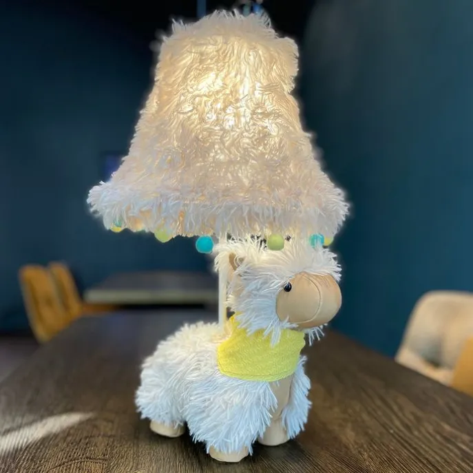 Altijd al een alpaca willen aaien? Dit is Alma, onze pluche tafellamp. Alma is gemaakt van superzachte beige stof. De pompoentjes op de lampenkap en de schattige gele sjaal zorgen voor een subtiele kleuraccent in je interieur. Alma is handgemaakt en heeft een snoer van 1,7 meter, is 48 cm hoog en 34 cm breed. De lamp heeft geïntegreerde led-verlichting. Maak de kinderkamer extra sfeervol met onze pluche Alma. Met de aankoop van een Happy Lamp maak je niet alleen jezelf gelukkig, maar ook iemand anders. Een deel van de opbrengst van elke Happy Lamp wordt gedoneerd aan een kinderwelzijnsorganisatie.