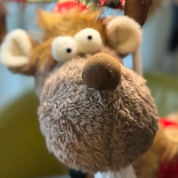 Breng de magie van de feestdagen naar de kinderkamer met de schattige Rudi tafellamp. Deze bruine rendierlamp is niet alleen een functioneel licht, maar ook een speelse decoratie die iedereen een glimlach bezorgt. Met zijn zachte vacht, ondeugende ogen en warme wintertrui is Rudi klaar om de winteravonden te verlichten. De lampenkap is versierd met een vrolijk kerstpatroon, voor een extra feestelijke touch. Perfect voor het creëren van een gezellige en vrolijke sfeer, of het nu is voor het voorlezen van slaapverhalen of gewoon om de kamer op te fleuren. Geef je kamer een unieke en hartverwarmende touch met de Rudi rendier tafellamp. Klaar om de feestelijke vreugde in huis te halen? Bestel Rudi vandaag nog en laat de feestdagen beginnen!