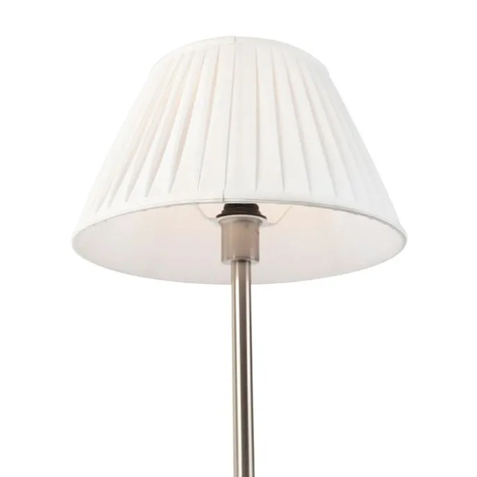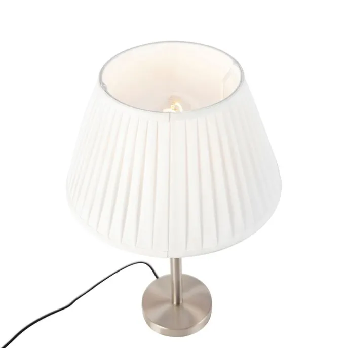 Klassiek tafellamp staal met plissé kap wit 35 cm – Simplo