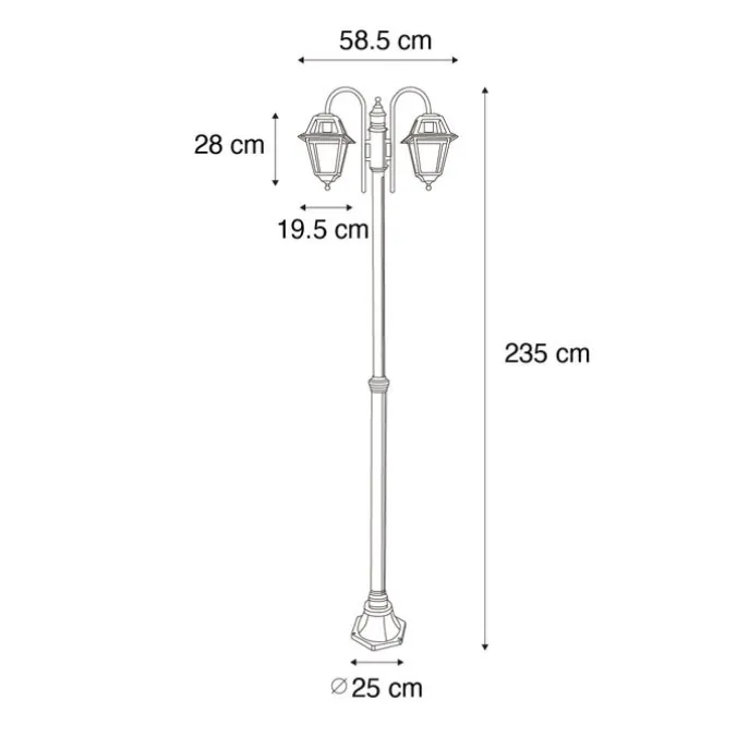 Klassieke buiten lantaarn zwart 235 cm 2-lichts IP44 – Berta