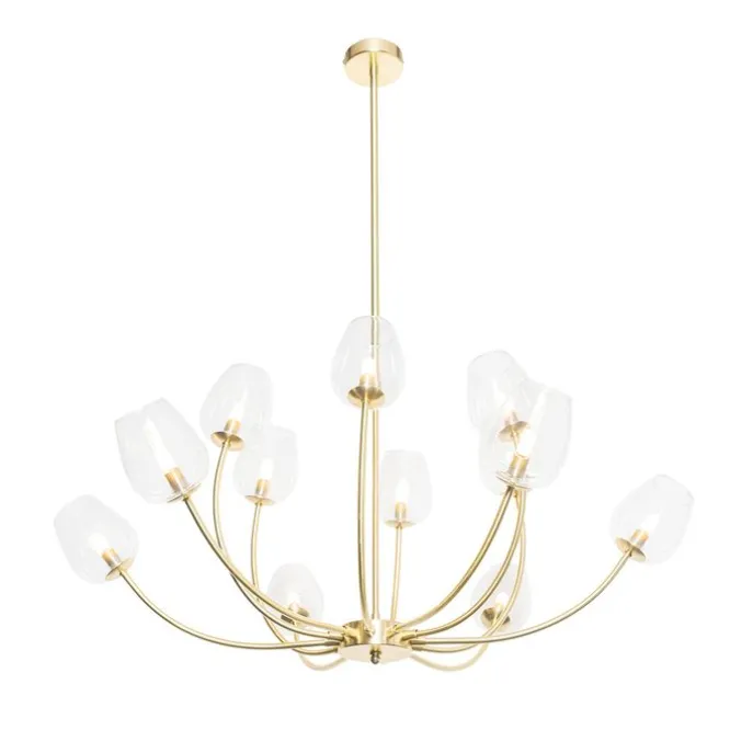 Klassieke hanglamp goud met glas 12-lichts – Elien
