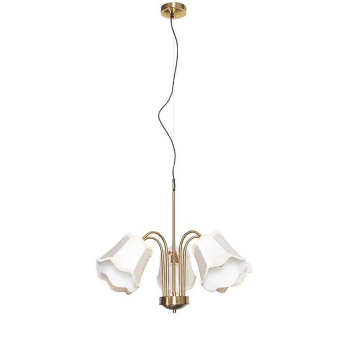 Klassieke hanglamp messing met witte lampenkap 5-lichts – Nona