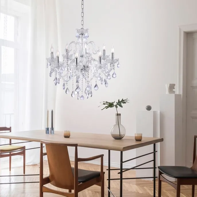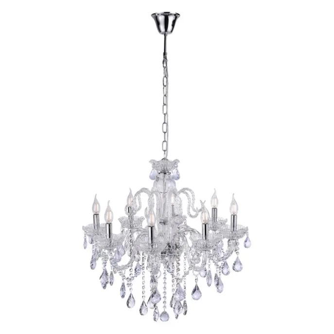 De kroonluchter Armas is een tijdloos kunstwerk omdat deze gemaakt is van glas! Een echte eyecatcher in elke ruimte. De kroonluchter heeft een diameter van 71 cm en een hoogte van 180 cm. Door de 8 lichtpunten brengt deze lamp veel sfeer in een ruimte. De lichtbronnen met een E14 fitting worden er niet bijgeleverd. Wil je de sfeer aanpassen? Dat kan! Armas is dimbaar, dimmer is niet inbegrepen. Maak je interieur af met Armas!