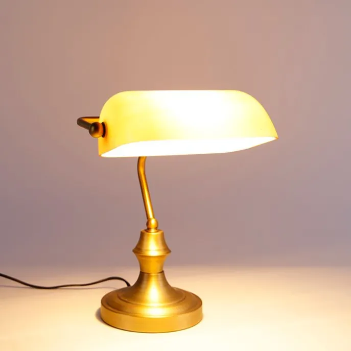 Klassieke notarislamp brons met amber glas – Banker