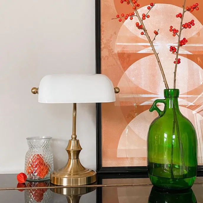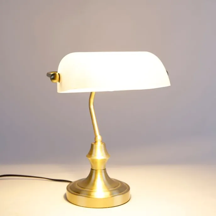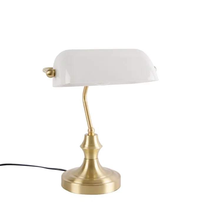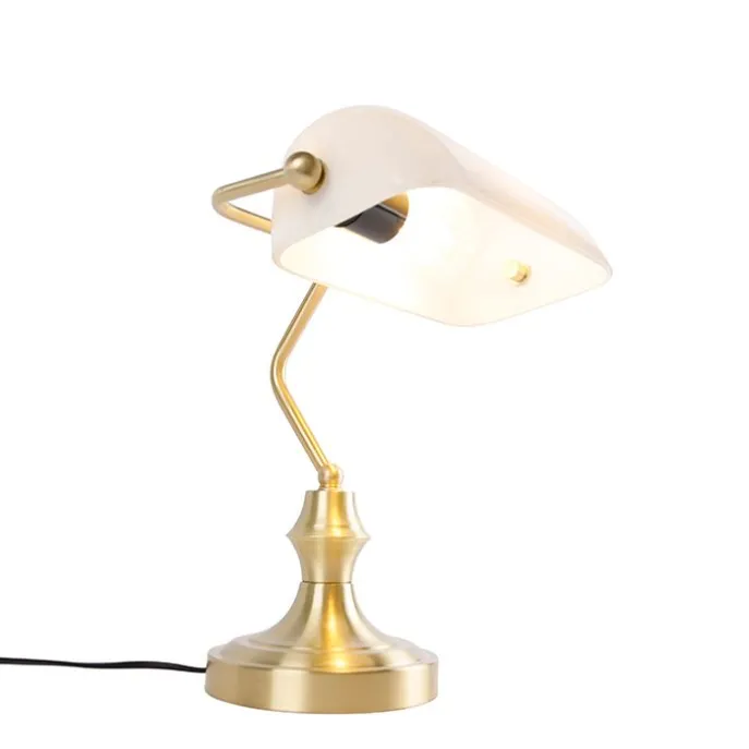 Klassieke notarislamp goud met opaal glas – Banker