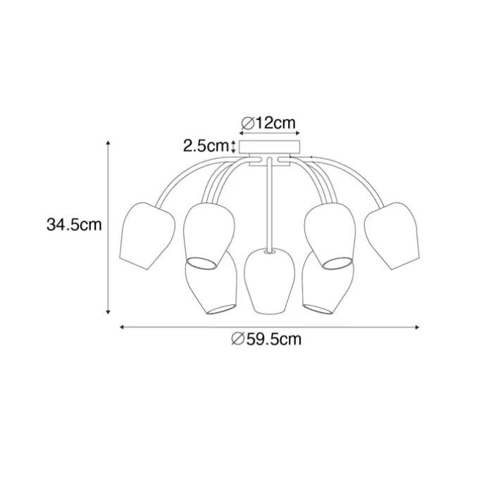 Let’s go classic met onze Elien. Een klassieke plafondlamp die een unieke kroonluchter look heeft. De lamp is mooi afgewerkt met een gouden armatuur en glazen lampenkapjes. Het is een stijlvolle lamp die de hal en de woonkamer in een prachtig licht zal steken! Ook boven de eettafel tijdens het diner is het een blikvanger. Hij heeft een hoogte van 34,5 cm en een diameter van 59,5 cm. Laat je Elien stralen in huis! Let op: de lamp wordt zonder lichtbronnen geleverd, bestel zelf nog 9 G9 lichtbronnen bij van max. 28 Watt. Een echte stijlvolle toevoeging in je interieur, deze Elien!