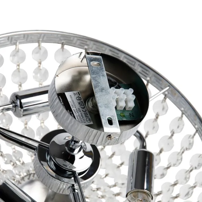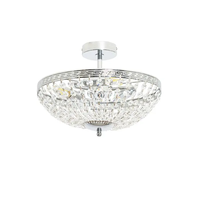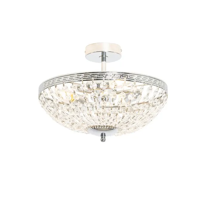 Klassieke plafondlamp staal met kristal 3-lichts – Mondrian