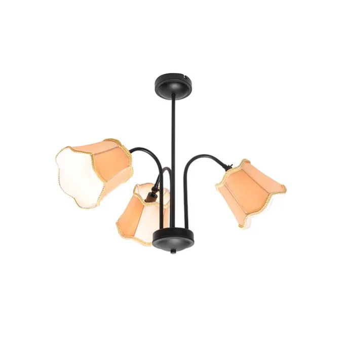 Klassieke plafondlamp zwart met lampenkap goud 3-lichts – Nona