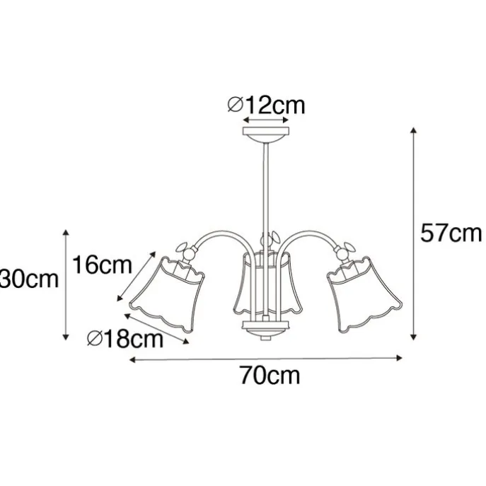 Wat een gezellige plafondlamp, de Nona! De gezellige kapjes geven meteen een fijne sfeer.Plafondlamp Nona is van zwart staal gemaakt. Hij heeft een diameter van 70 cm en een hoogte van 57 cm. De montageplaat heeft een diameter van 12 cm en een hoogte van 4 cm. Hij heeft drie lampenkappen van stof, welke gouden randjes hebben. De kappen hebben een diameter van 18 cm en een hoogte van 16 cm. Maak de lamp compleet met drie lichtbronnen met een E14 fitting (max. 15 watt), deze zijn niet inclusief. Nona is dimbaar met een externe dimmer.Leuk voor in de woonkamer, slaapkamer of gang. Eigenlijk overal!