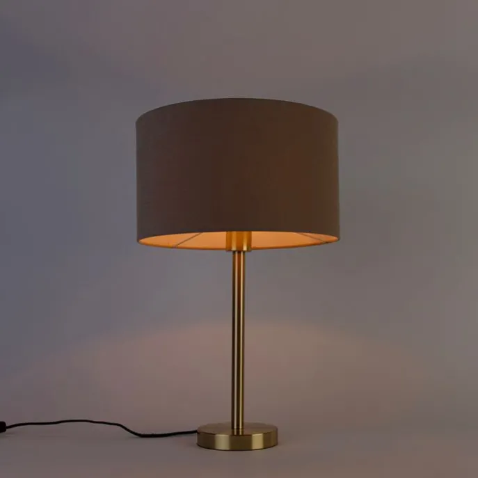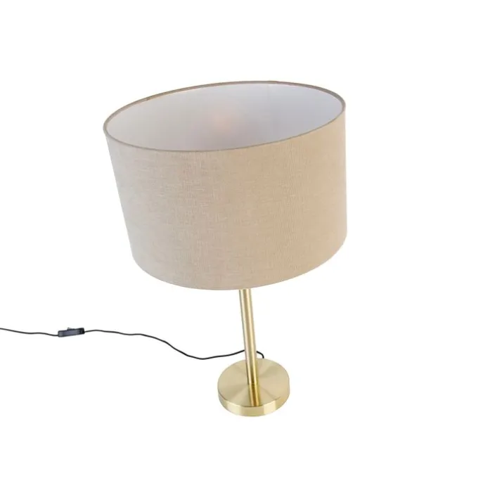 Klassieke tafellamp messing met kap lichtbruin 35 cm – Simplo
