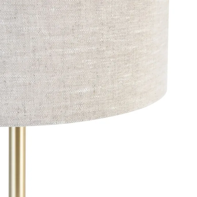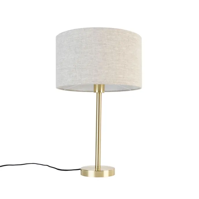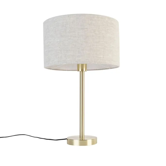 Klassieke tafellamp messing met kap lichtgrijs 35 cm – Simplo