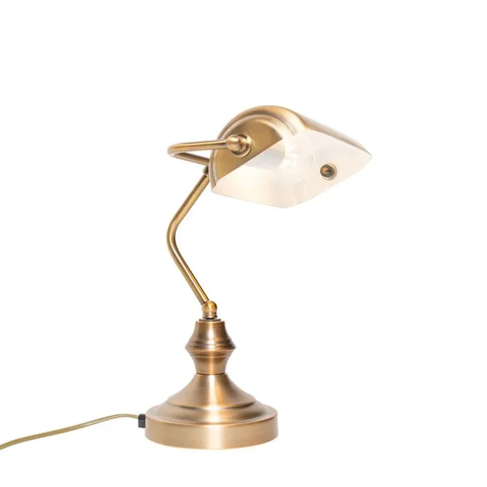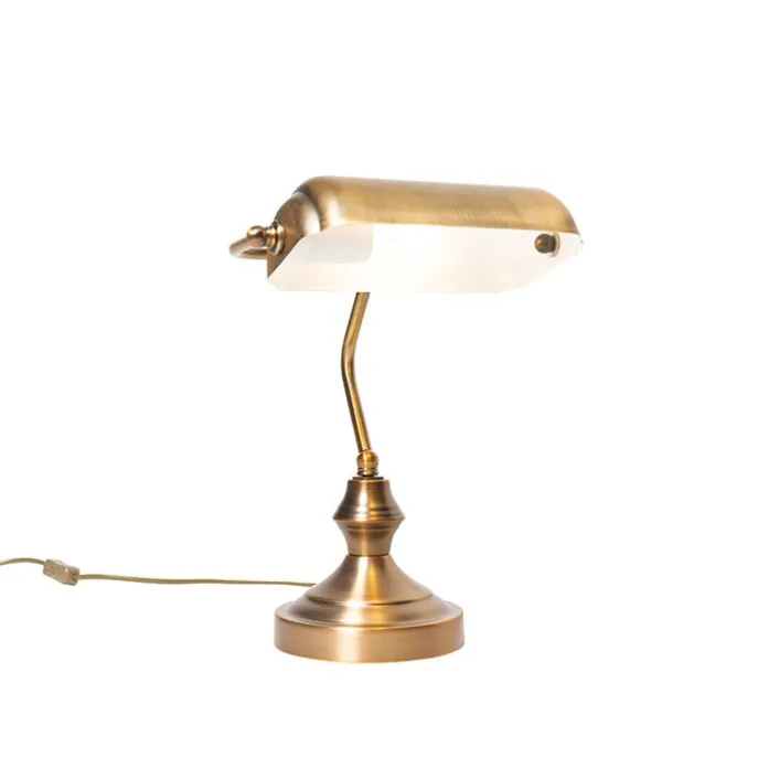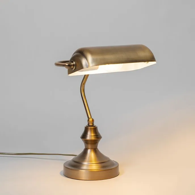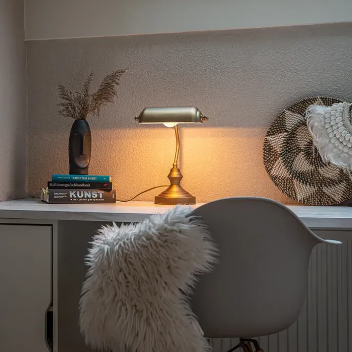 Altijd al een bronzen notarislamp willen hebben? Dan is dit je kans! Banker is afgewerkt in een oude bronzen kleur en is gemaakt van staal. Hij heeft een diepte van 24,5 cm, hoogte van 35 cm en lengte van 26,5 cm. De voet heeft een diameter van 15 cm en een hoogte van 2,5 cm. Het snoer heeft een lengte van 200 cm. Je maakt de lamp af met een E27 fitting lichtbron van max. 60 watt. Deze antieke notarislamp staat perfect in de werkkamer, woonkamer of slaapkamer. Geef je interieur een chique twist met Banker.
