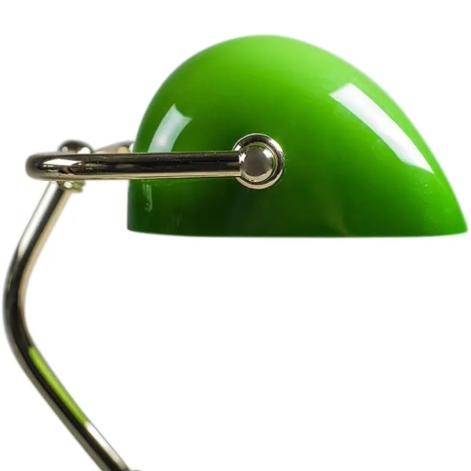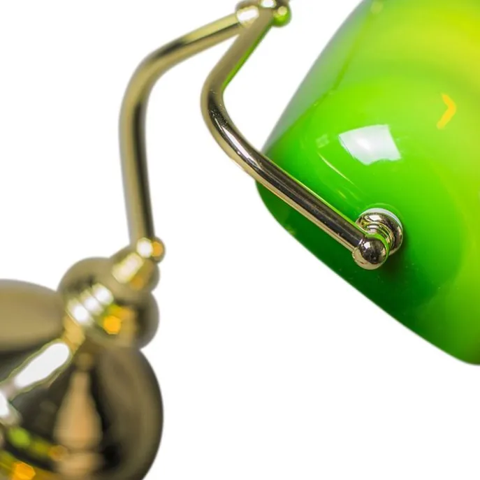 De echte klassieker: de notaris/bankierslamp! Afgewerkt met goud en groen. Kan perfect dienen als eyecatcher op jouw bureau. De lamp heeft een E27 fitting (max. 60 Watt) en wordt geleverd zonder lichtbron. Hij heeft een hoogte van 35 cm een breedte van 26,5 cm. De glazen kap van de lamp is 22 cm lang en 13,5 cm breed. Deze klassieke lamp is dimbaar (dimmer niet inbegrepen) om het gezellig te maken in de avond! De lamp wordt met snoer en stekker geleverd. Maak je bureau of kantoor helemaal af met deze notarislamp!