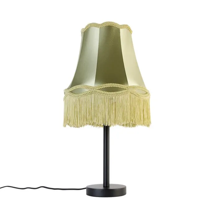 Klassieke tafellamp zwart met granny kap groen 30 cm – Simplo