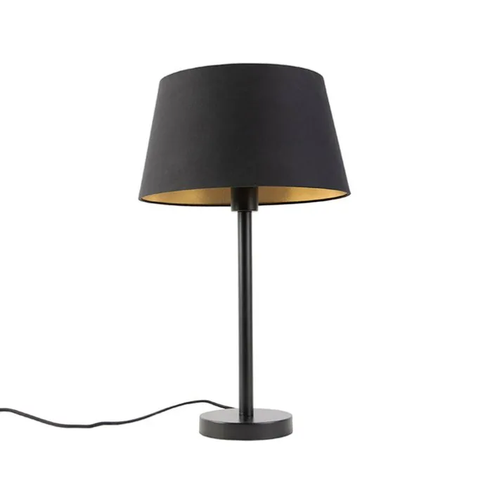 Klassieke tafellamp zwart met zwarte kap 32 cm – Simplo