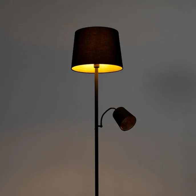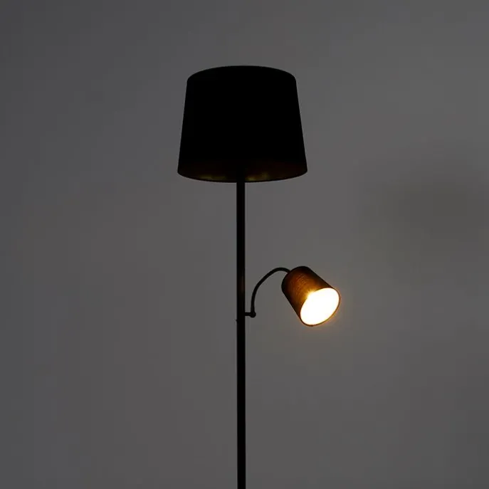 Klassieke vloerlamp zwart met goud en leeslampje – Retro