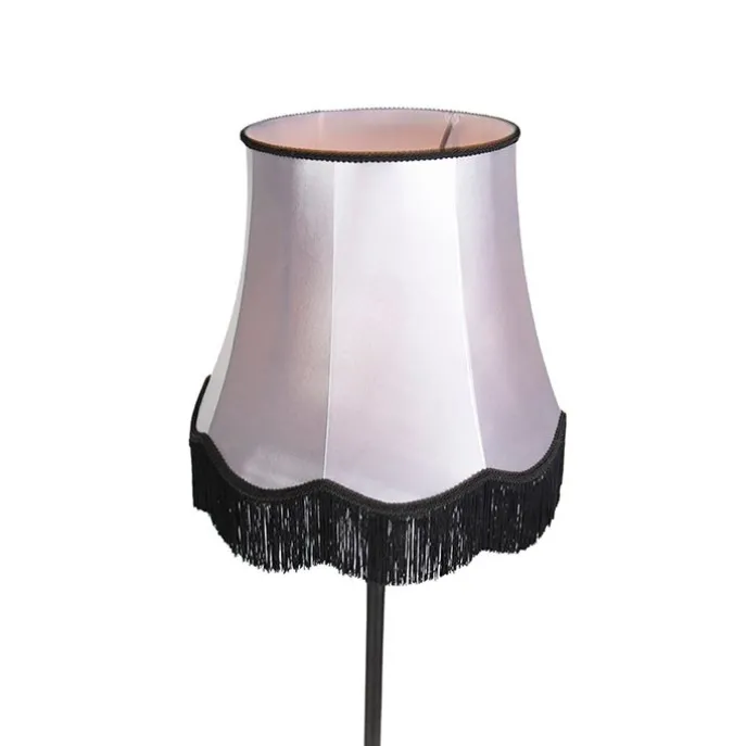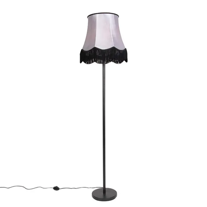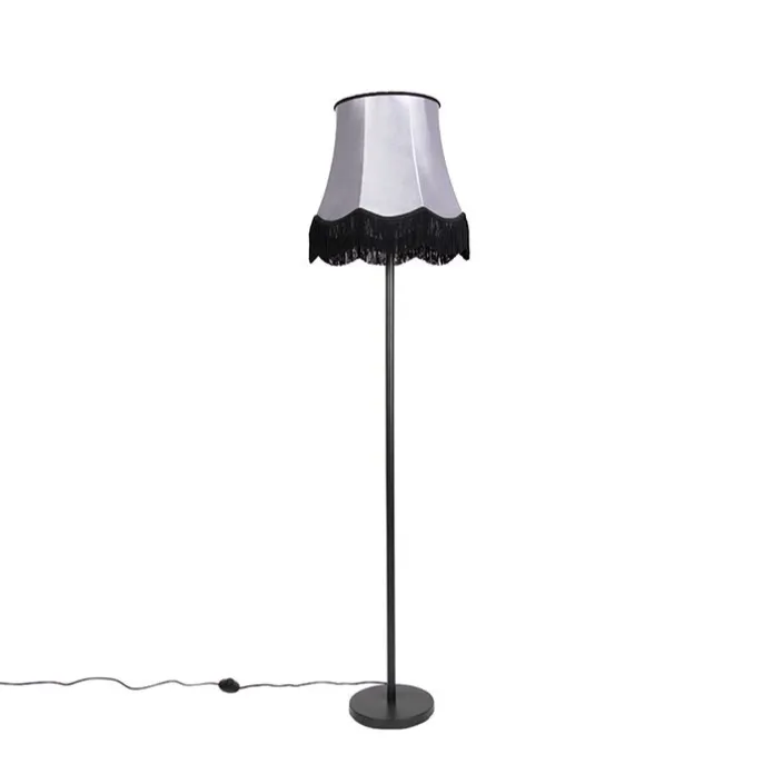 Klassieke vloerlamp zwart met Granny B kap grijs – Simplo